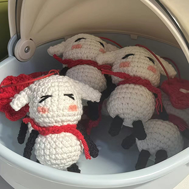 玩偶以白色为主色调,搭配黑色四肢与红色围巾,脸颊的粉嫩腮红更添萌态,还原了 “易只羊” 天真可爱的模样。它不仅是易烊千玺粉丝的专属收藏好物,更是手工艺术与偶像情怀的结合体。