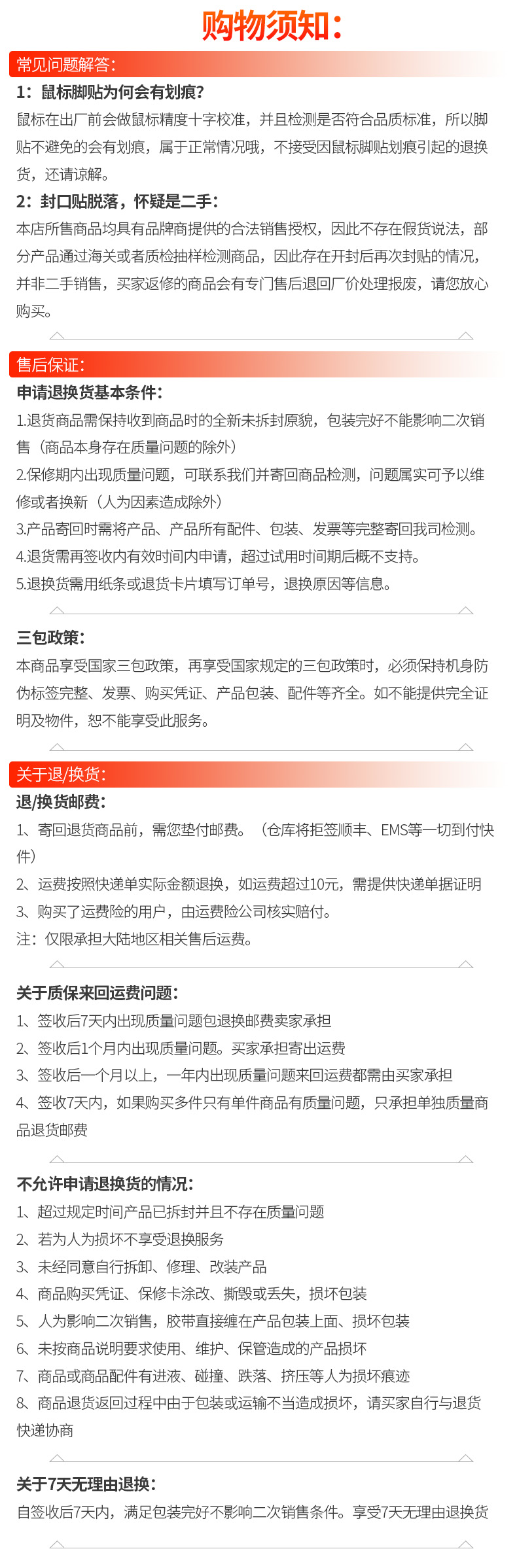 七天无理由退换货