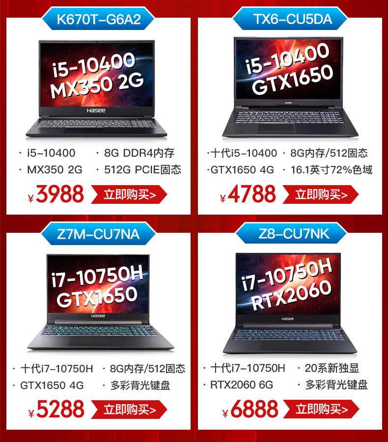 电脑办公、手机数码 > 超极本 > 【九折秒杀】神舟战神ZX6/TX6 十代英特尔酷睿i5 GTX1650独显15.6吋144Hz电竞屏学生吃鸡游戏本笔记本电脑