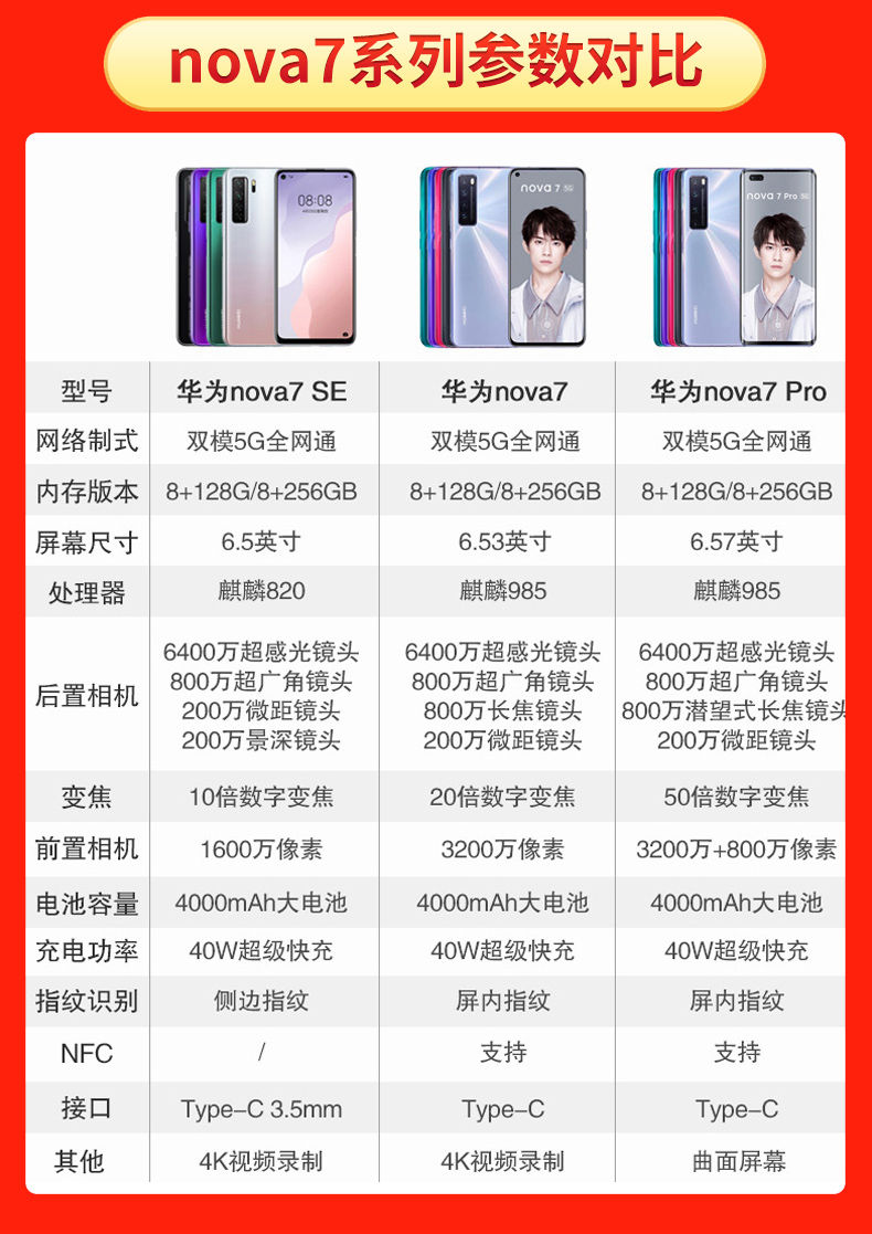 24期免息/现货速发】Huawei/华为nova7 Pro 5G手机官方旗舰店nova8正品p40新款p30直降荣耀30保时捷mate40pro