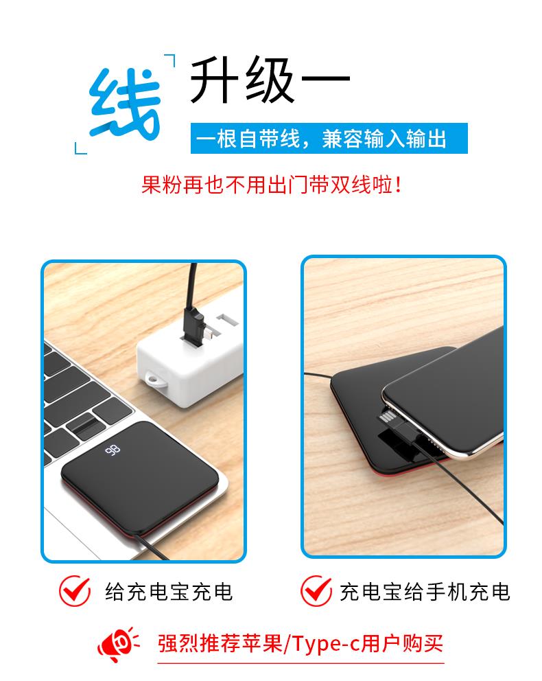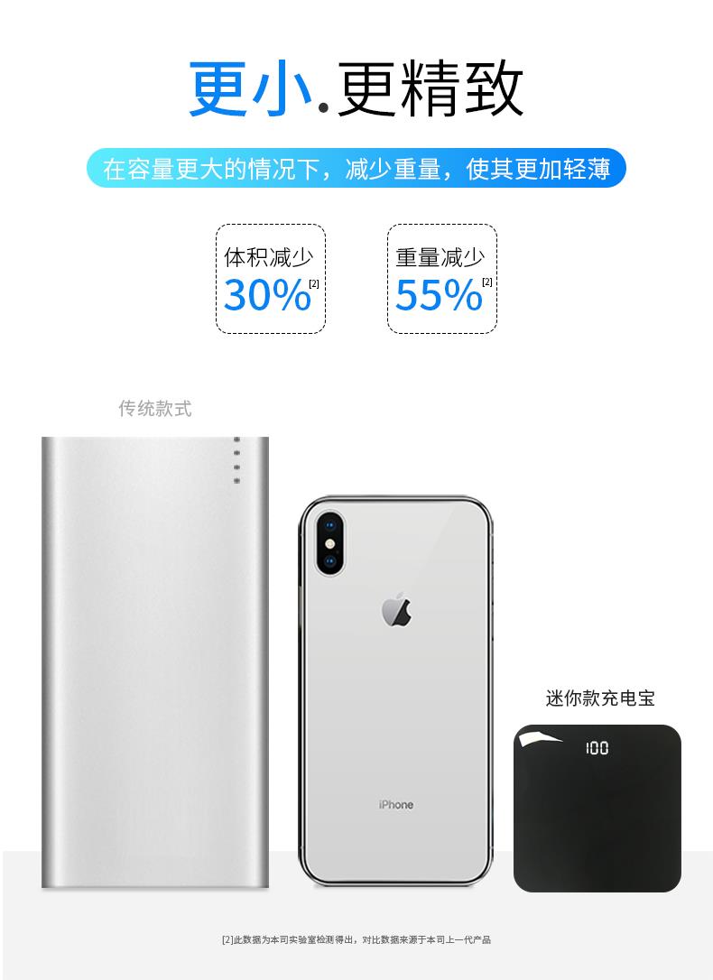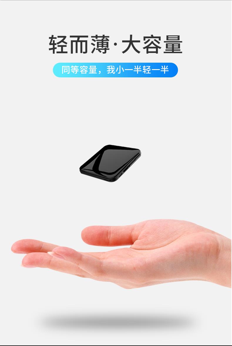 超薄便携小巧大容量移动电源:体型便携,只为更方便携带