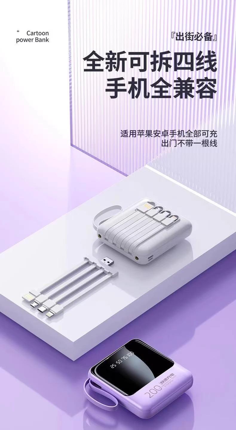 款式好看,自带线充电快,又很方便,而且还有电量显示,充电宝小巧方便,充满电大概可以充3.5个手机,电容量杠杠的,可以过高铁安检,出去旅游必备好物
