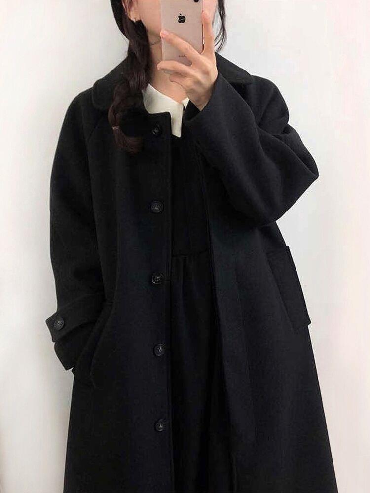 黑色赫本毛呢大衣,给人在冬天不一样的感觉。
