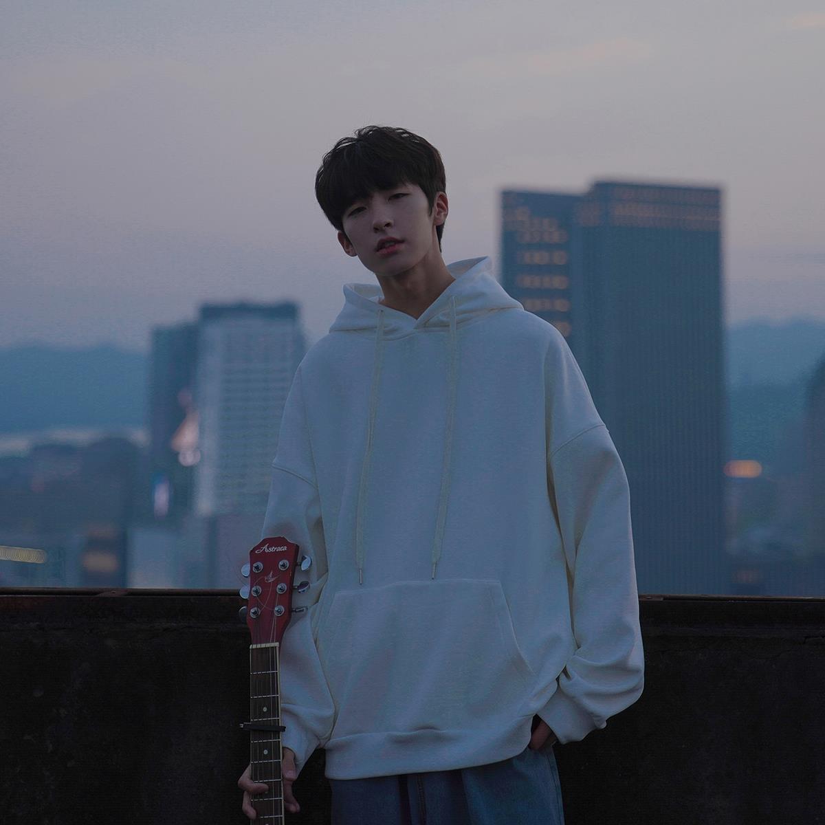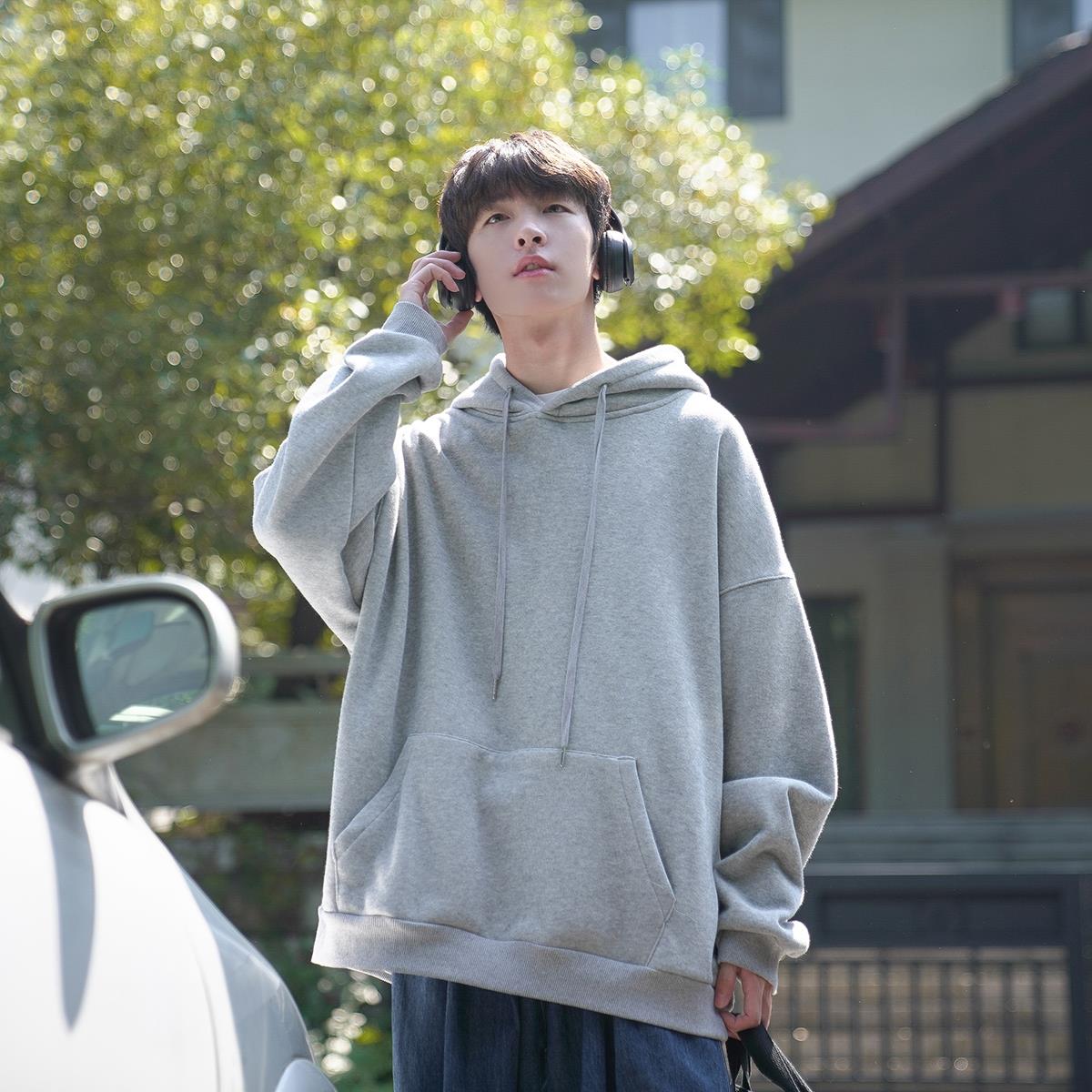 服饰箱包、运动户外 > 卫衣 > D020秋冬新品男士卫衣韩宽松落肩纯色连帽衫加绒袋鼠兜学生外套
