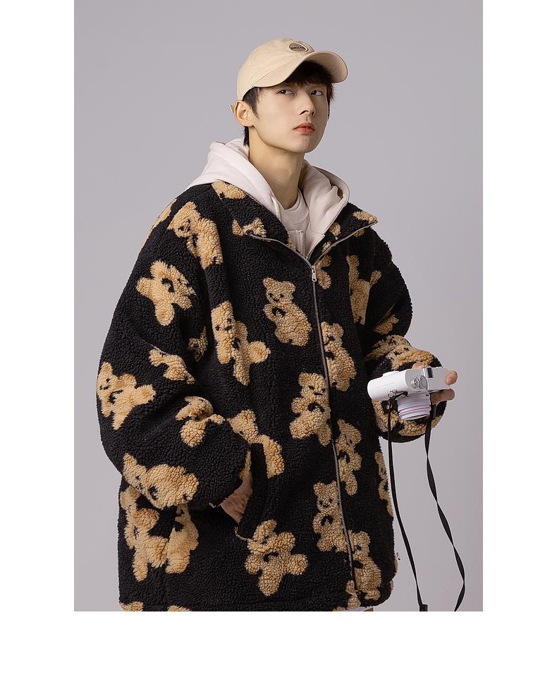 服饰箱包、运动户外 > 上装 > ARTSMAN 羊羔毛绒小熊棉衣男外套冬装新款连帽宽松假两件潮流外套
