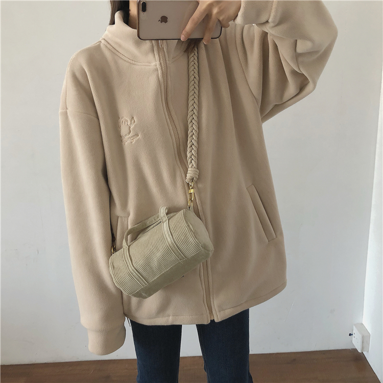 服饰箱包、运动户外 > 上装 > muzi 20冬/巨暖小火炉加厚奥利绒高领拉链卫衣开衫女保暖绒衫外套