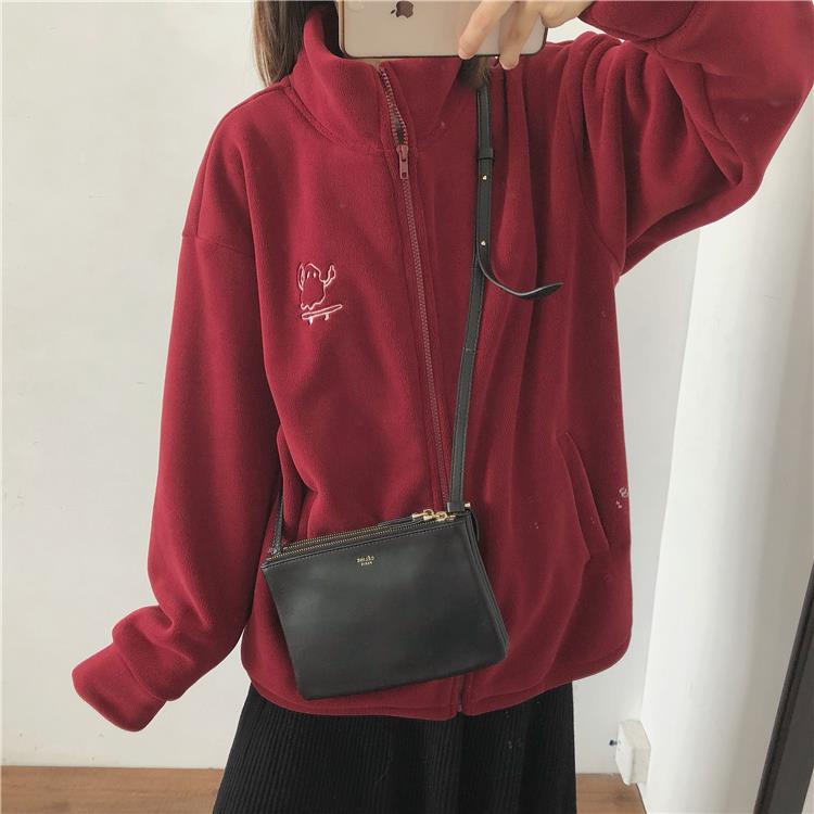 muzi 20冬/巨暖小火炉加厚奥利绒高领拉链卫衣开衫女保暖绒衫外套