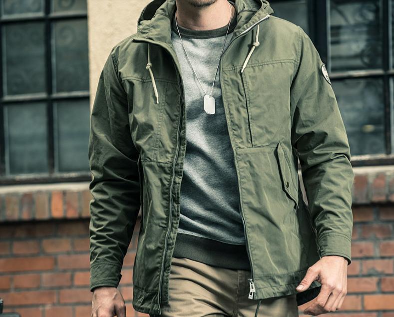 此款夹克为中长夹克,灵感来自于上世纪50年代“RAF”美国空军救援队穿着的夹克,这支救援队主要在山间所救飞行员,此款夹克在原有的基础上设计而成,有助于山间爬坡时更好的掩盖身体,衣服有防风保暖的作用,内幅多功能收纳口袋,可以放置手机,打火机,笔等物品,面料具有泼水防风的功能