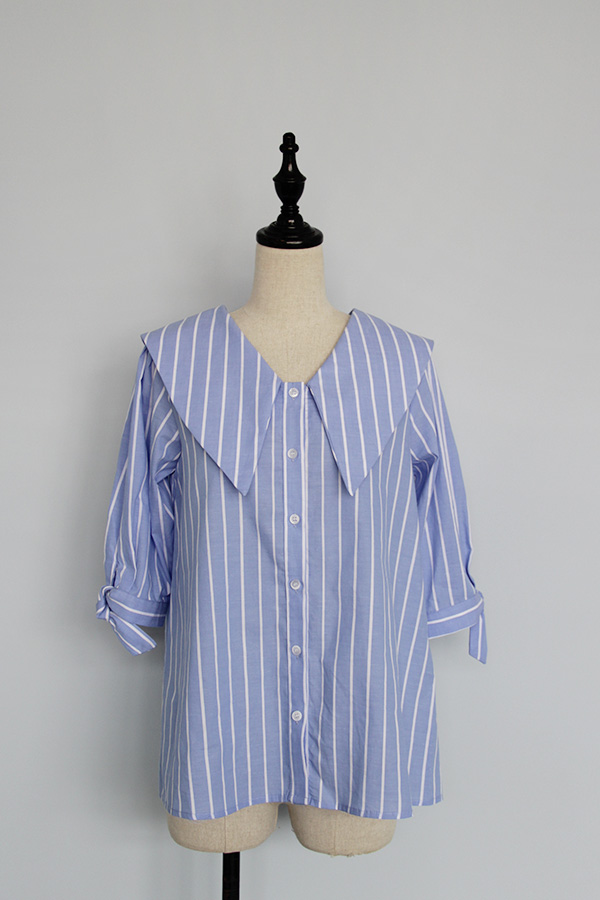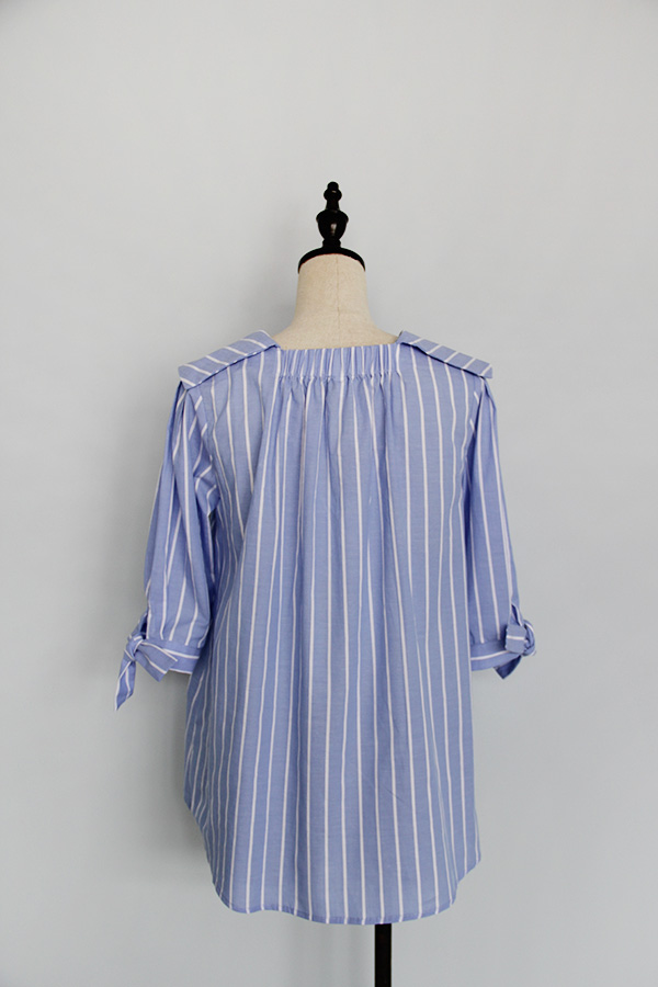 竖条纹除了显瘦,看起来还很整洁清爽,做的浅蓝色本身也很适合夏天