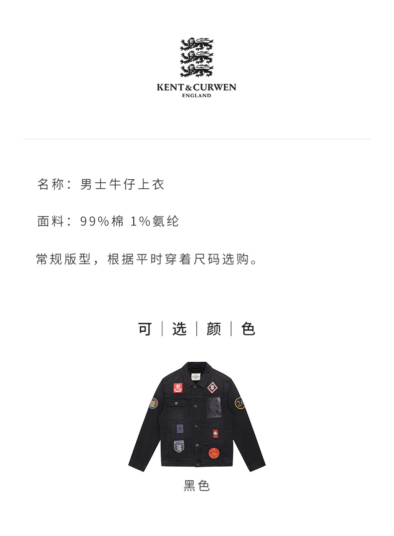 服饰箱包、运动户外 > 上装 > KENT&CURWEN/肯迪文男士早春系列徽章牛仔上衣K4100156I1