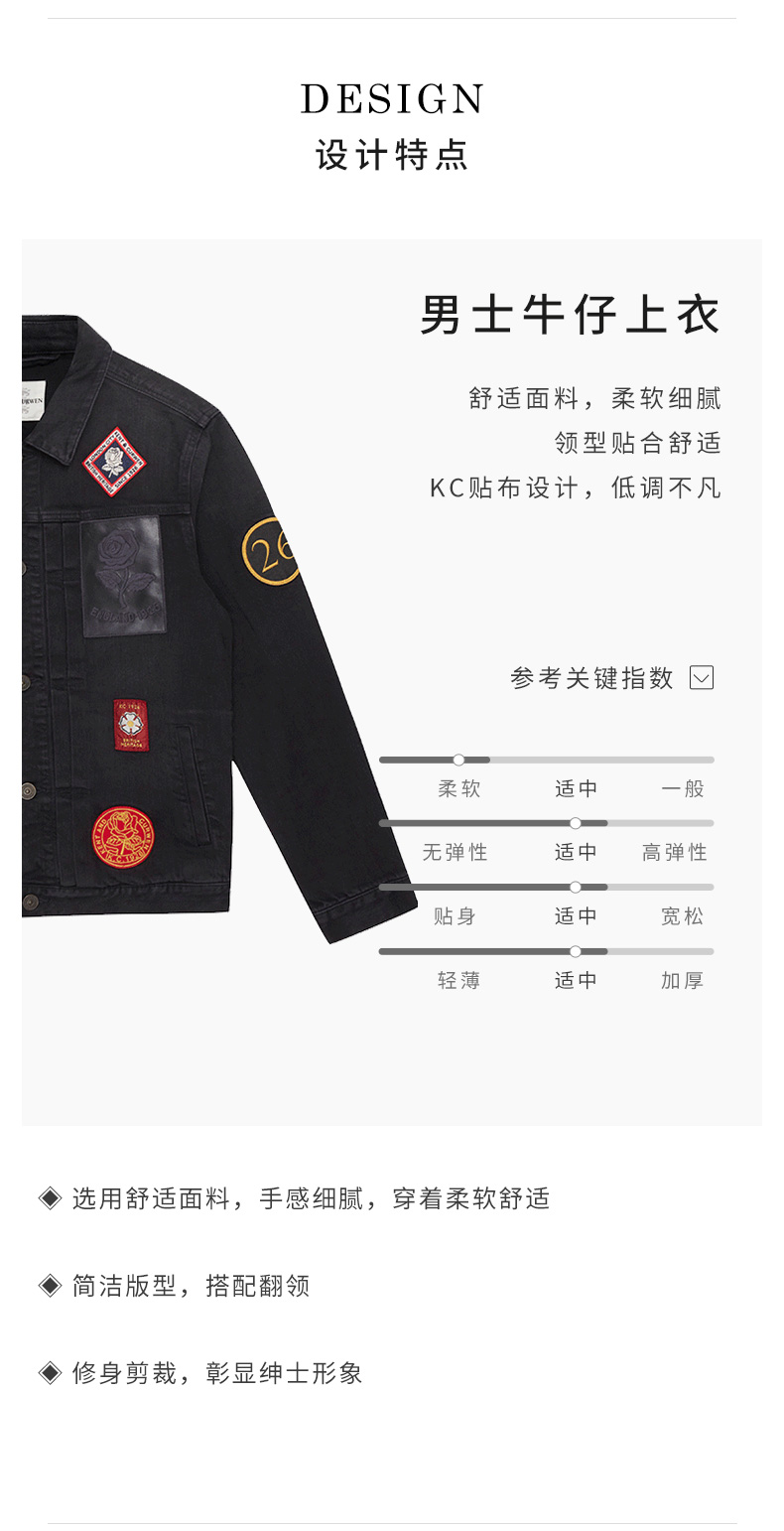 KENT&CURWEN/肯迪文男士早春系列徽章牛仔上衣K4100156I1