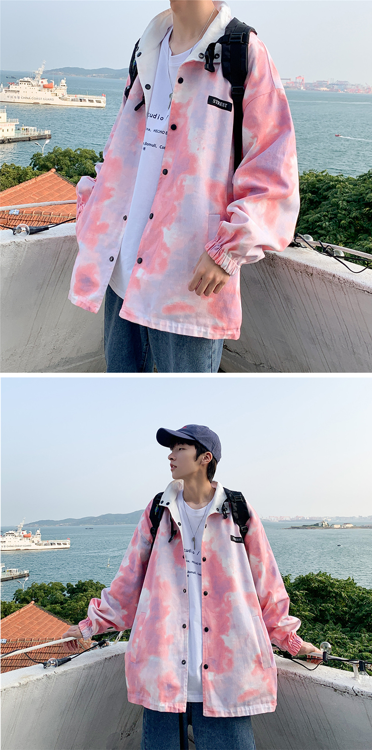 服饰箱包、运动户外 > 上装 > 胖胖哥加绒夹克男冬装新款扎染双面印花立领上衣宽松休闲大码外套