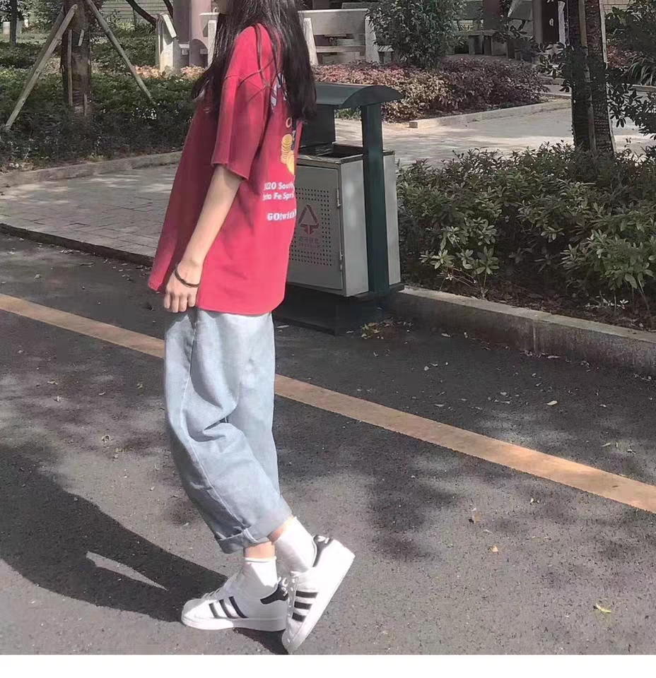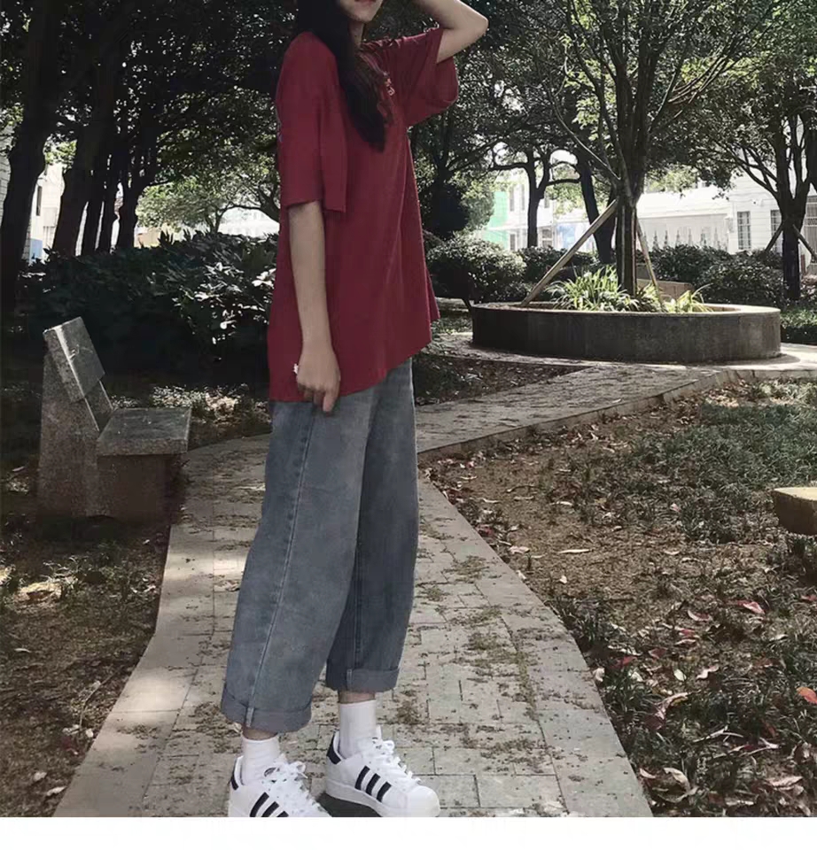 裤型比较宽松遮肉,牛仔布是软的,不用担心上身会硬