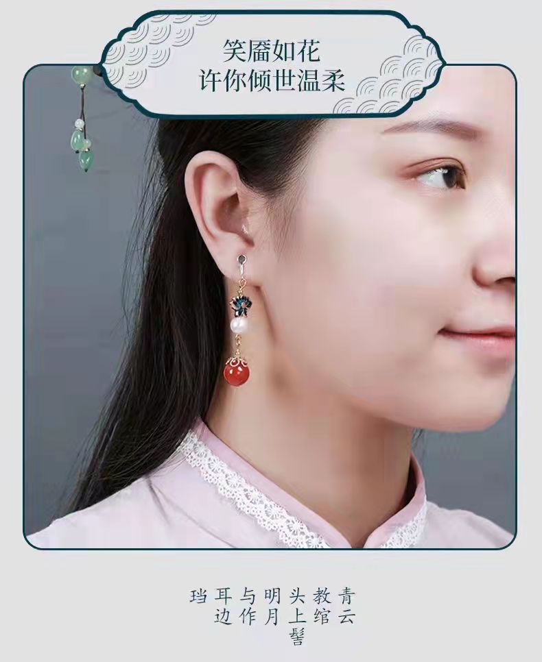 古风红玛瑙耳钉