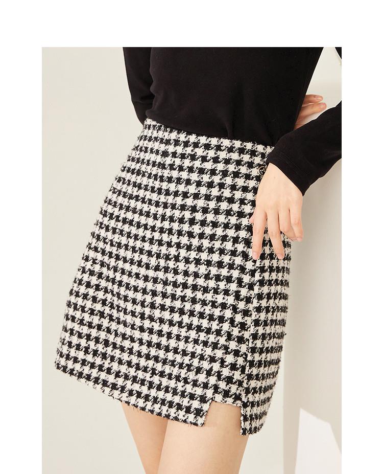 高腰开叉毛呢裙