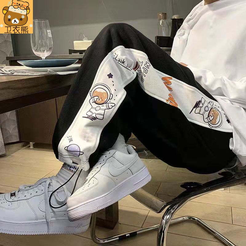 熊熊wyx新款潮流休闲裤子男宽松百搭ins阔腿直筒束脚裤