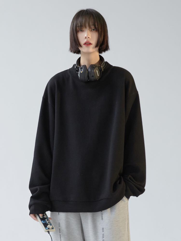 华夫格圆领卫衣女秋冬叠穿宽松bf慵懒风纯色上衣