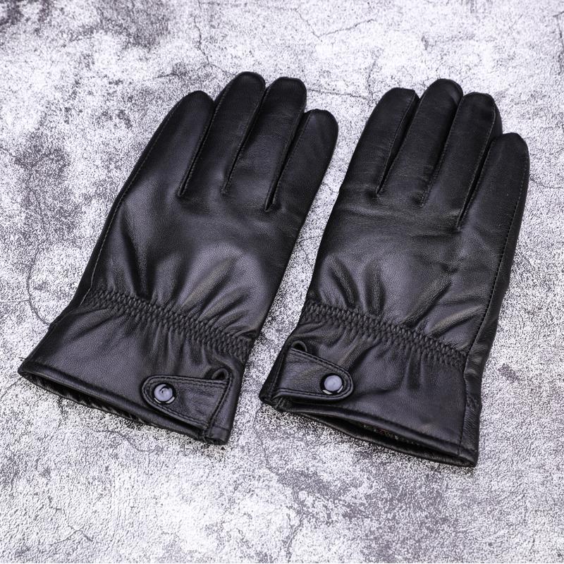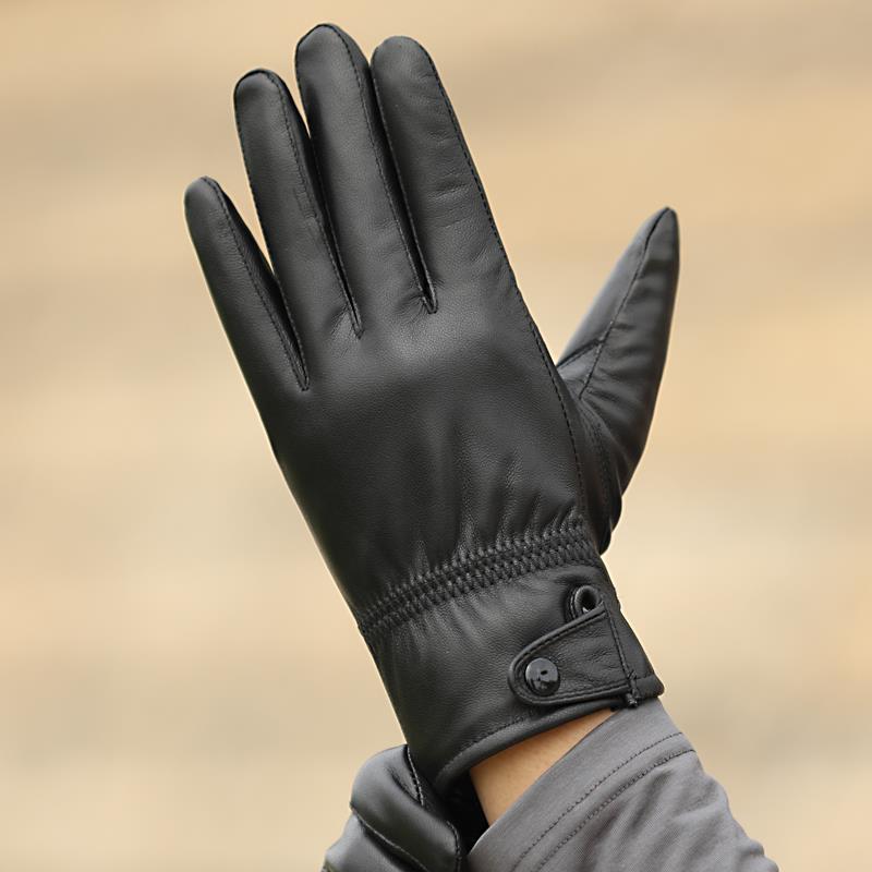 真皮手套男士绵羊皮手套时尚搭扣秋冬薄款加绒厚冬季开车骑行