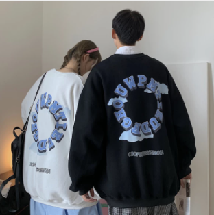 港风小众情侣装卫衣圆领套头春秋薄款宽松大码2021新款炸街外套女