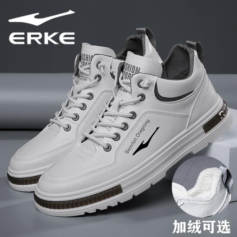 服饰箱包、运动户外 > > 鸿星尔克男鞋2021冬季新款休闲真皮板鞋男士加绒鞋运动鞋小白鞋潮