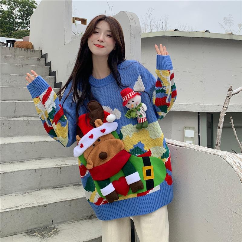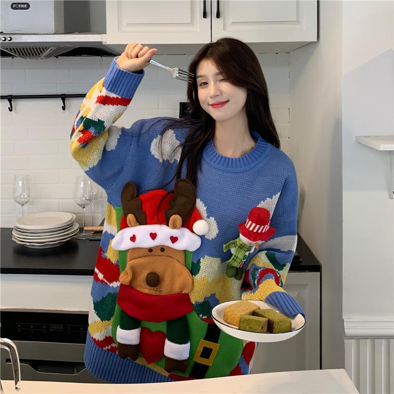 服饰箱包、运动户外 > 上装 > 红色圣诞毛衣女冬季加厚宽松慵懒2022新款爆款别致时尚洋气上衣服