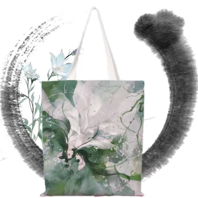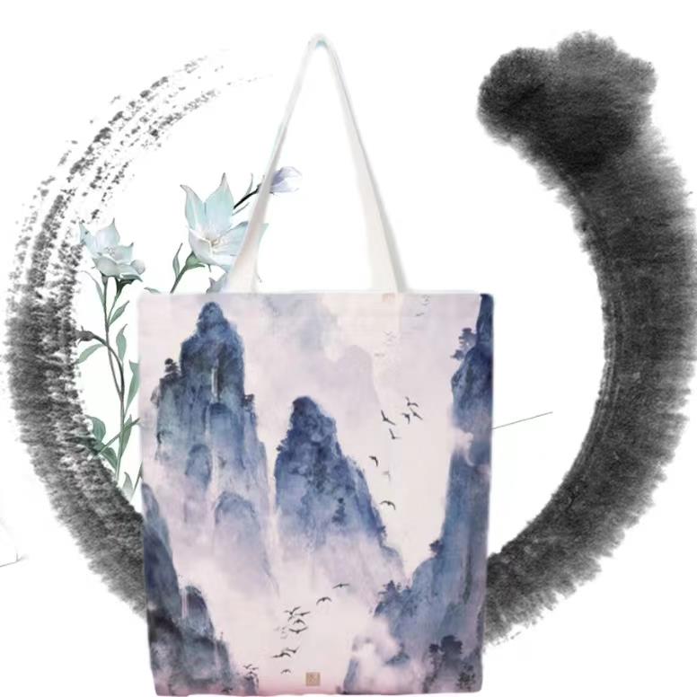 服饰箱包、运动户外 > 夹克 > 新中式小众国风水墨画帆布手提包典雅来图定制