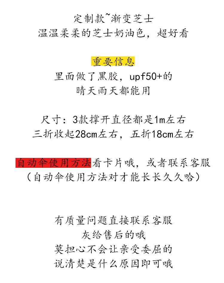 颜色分类: 玉子黄 奶油白 伞布: 黑胶 是否自动: 手动