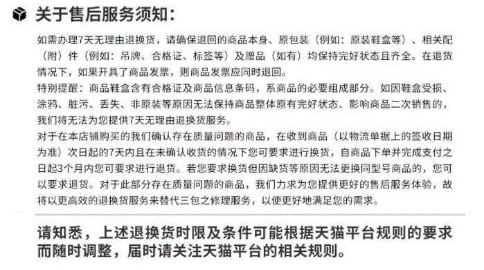 七天无理由退换货