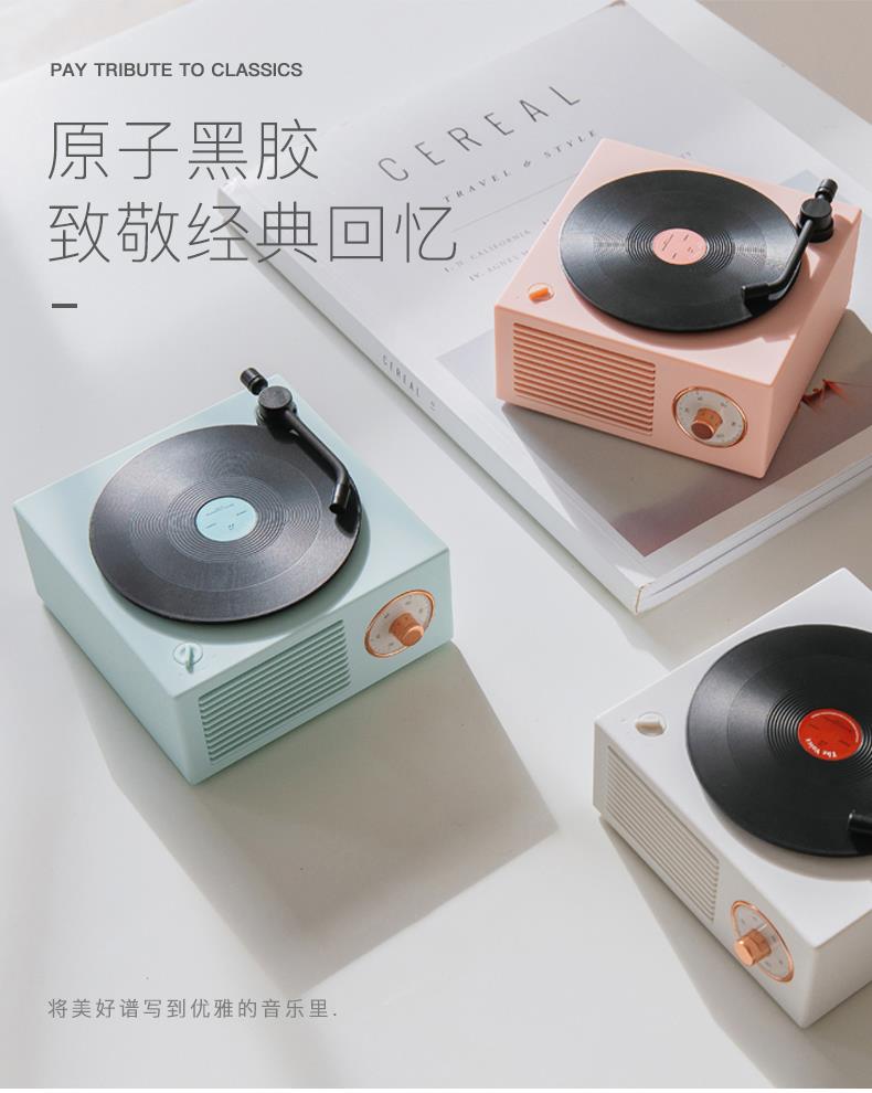 服饰箱包、运动户外 > 便携式音响 > 无线蓝牙音箱原子黑胶复古可爱小音响少女心创意生日礼物低音炮留声机女生宿舍播放器家用低音炮创意粉造型