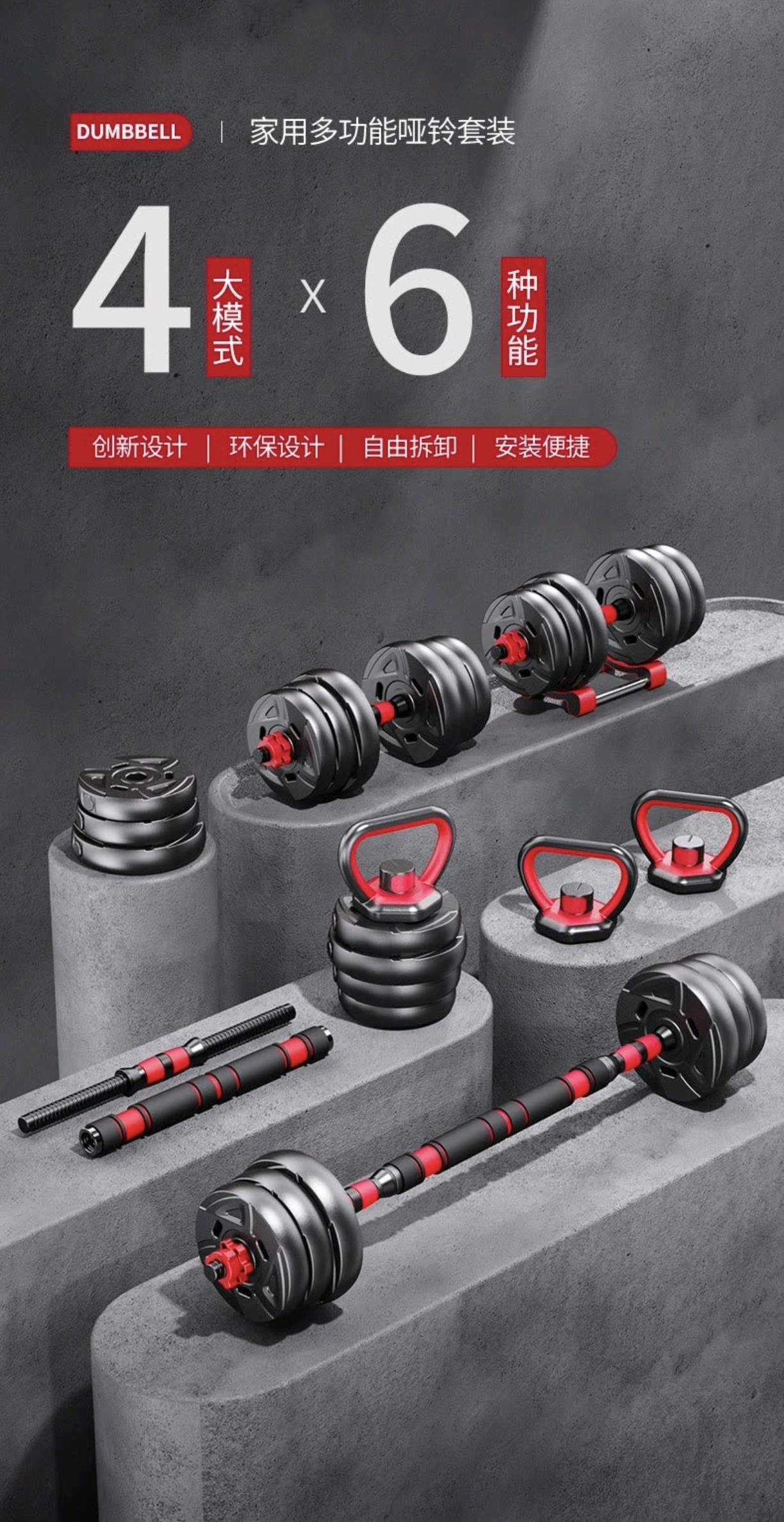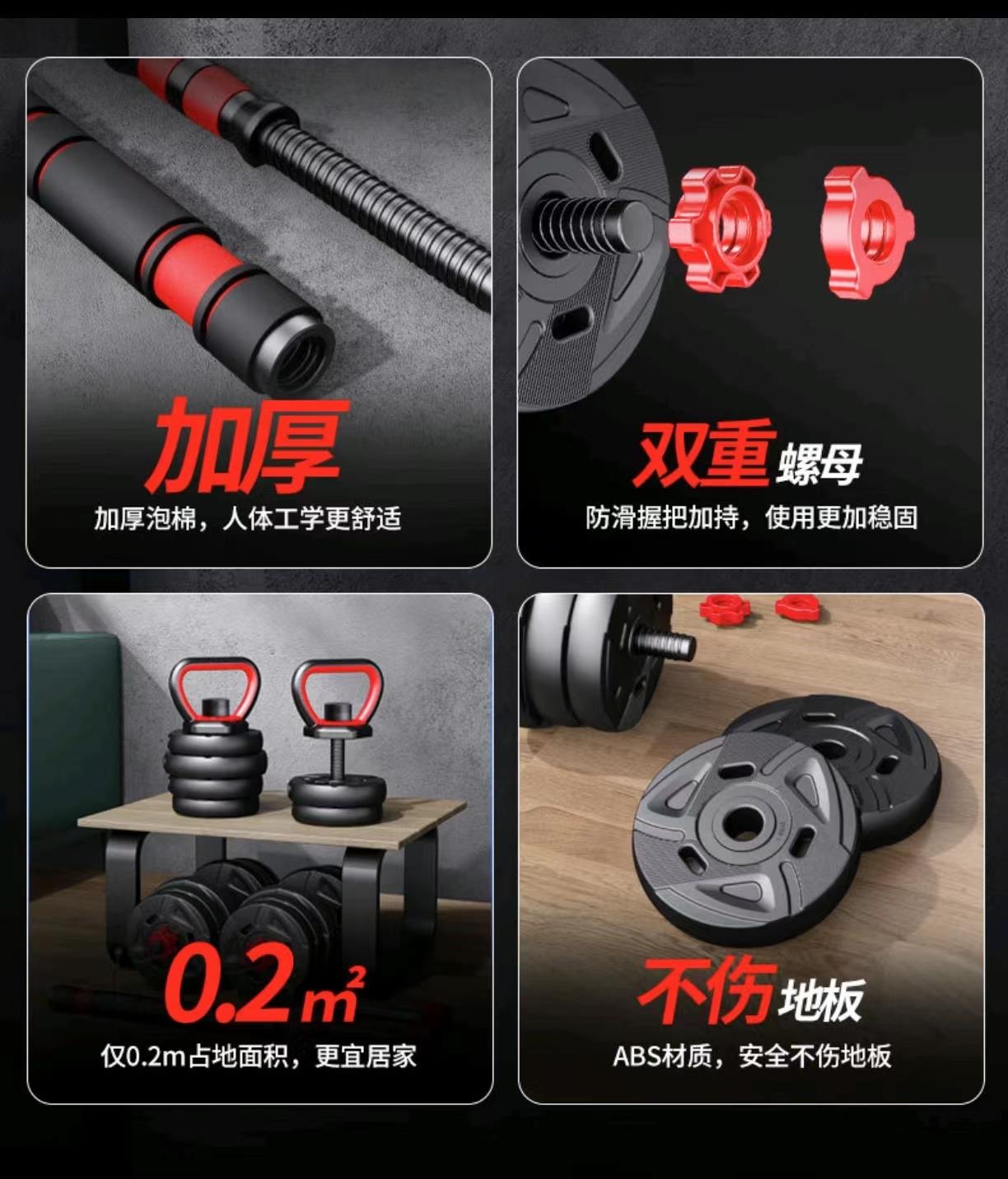 4、四种形态,随心所“练”:独具匠心,安装便捷的哑铃;杠铃形式,适合更多人的多种重量形态;壶铃形态,卧推健身,效果更佳;新增壶铃把手,可以充当俯卧撑支架,稳固又便捷!
