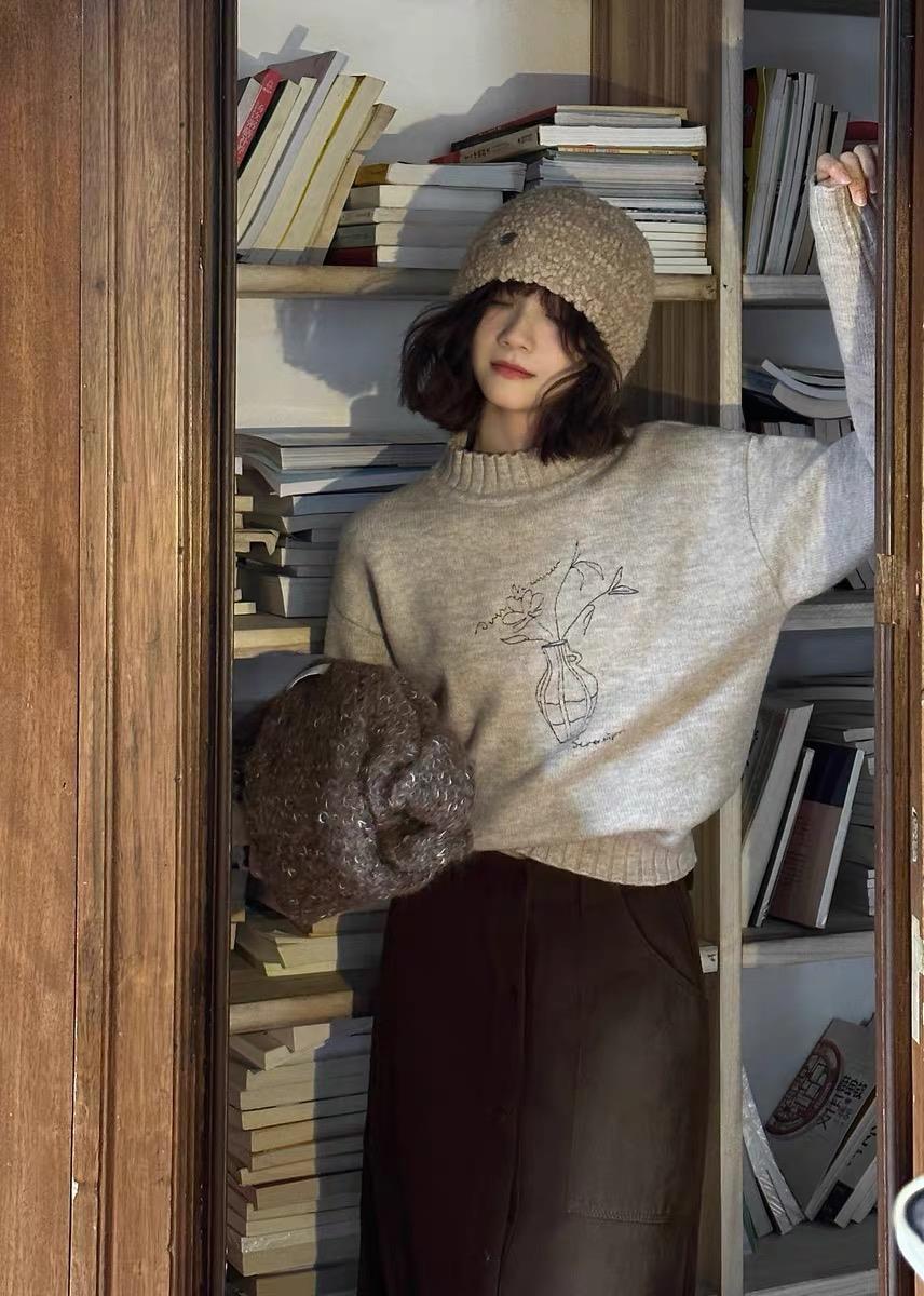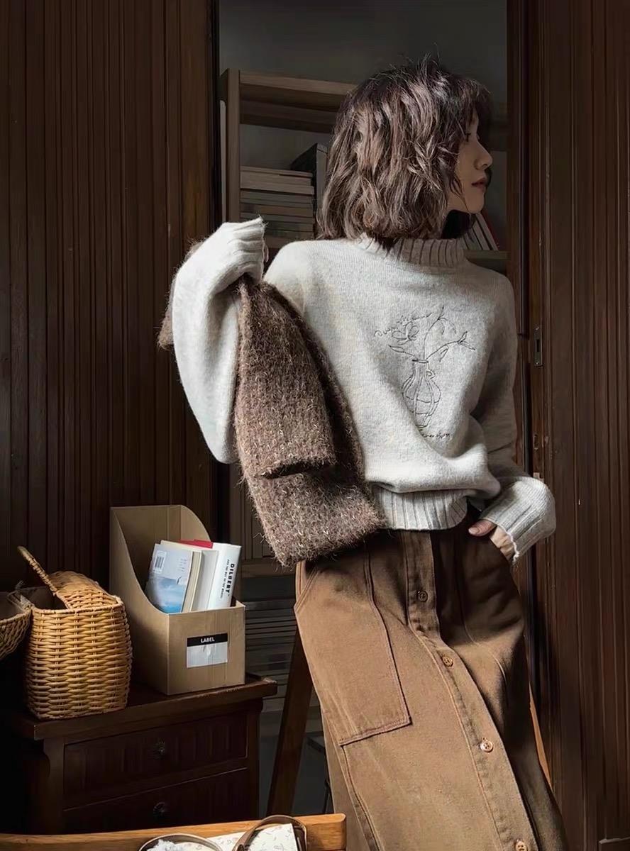 圆领毛衣女秋冬季2023新款今年流行漂亮设计感针织打底衫上衣