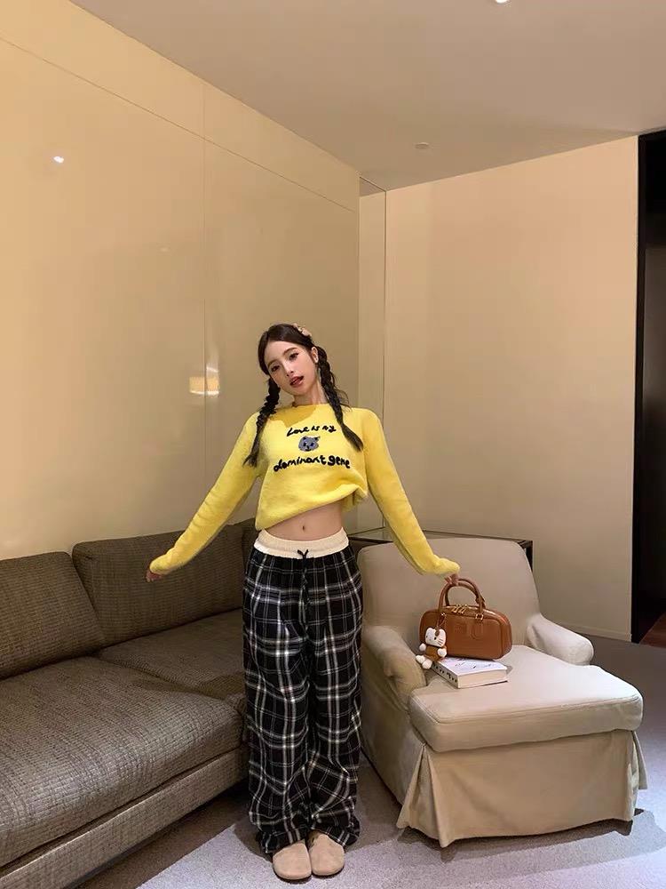 该格子裤腰部采用拼色橡筋收褶腰带抽绳设计休闲裤标配,裤身运用黑白格纹,拼接处格纹图案都是相对的耗工耗料GENG加稀有所值,脚口散脚设计,打造休闲感。