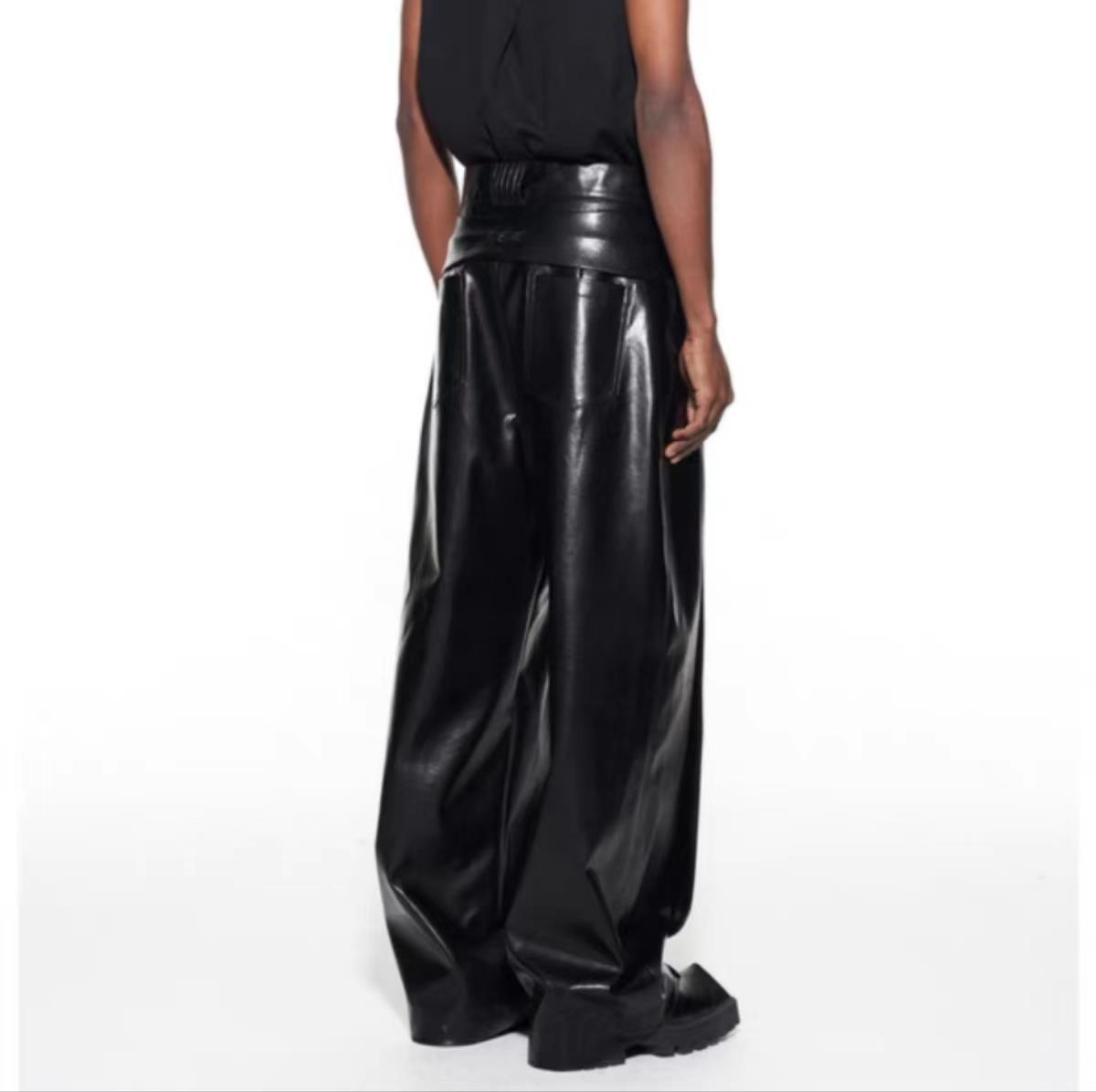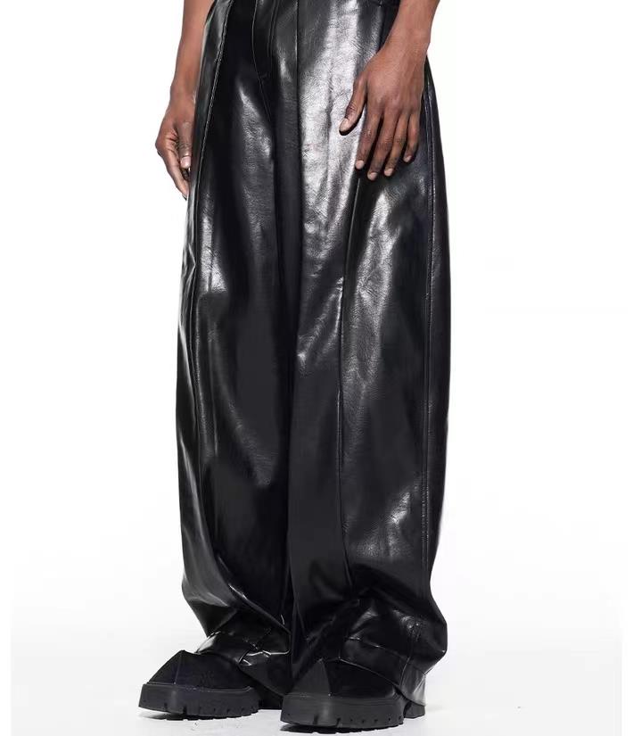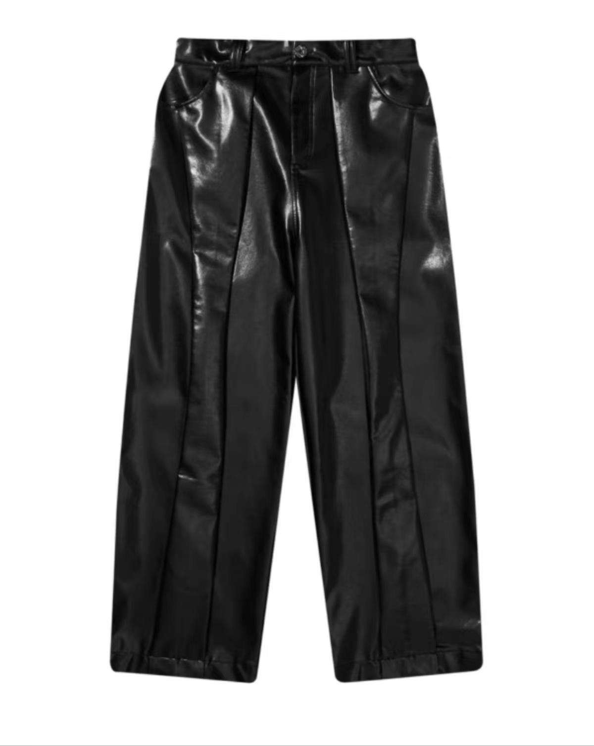 直筒裤裤型,裤身压褶设计,增强视觉效果,提升立体感。