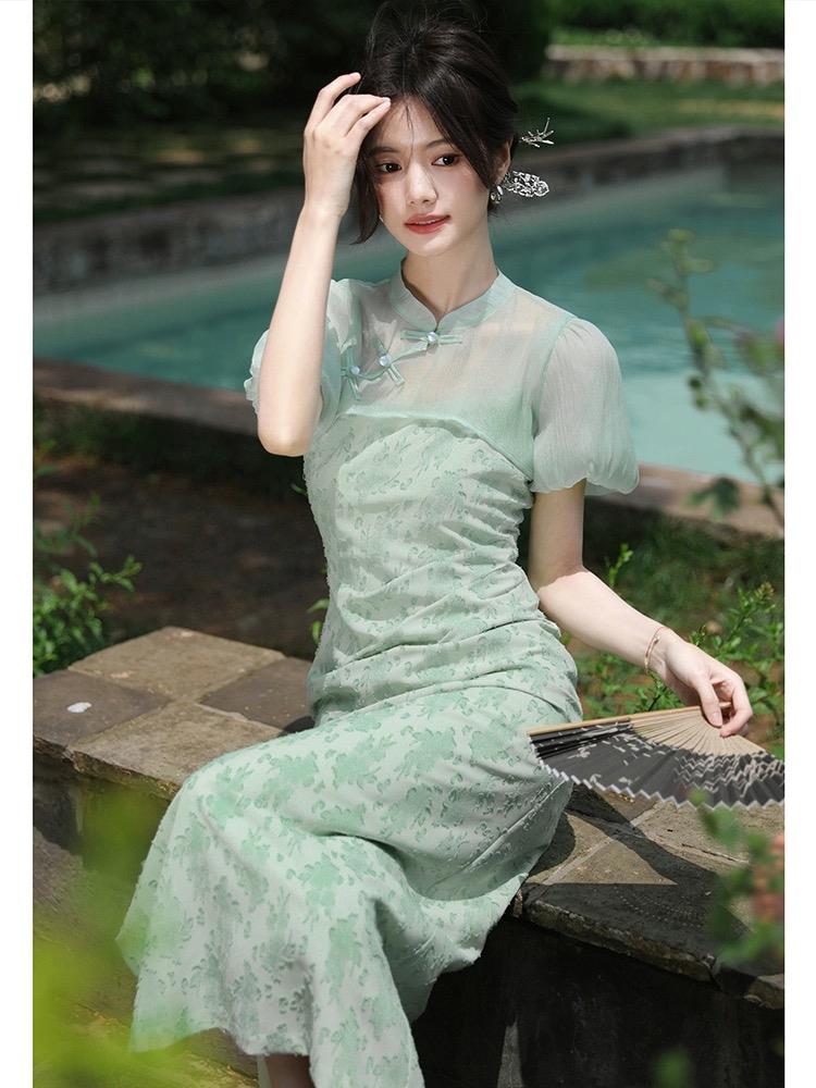 梅子熟了【清平乐】剪花纱薄荷曼波风新中式改良旗袍风罩衫吊带裙