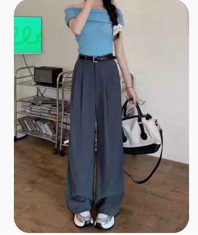 垂感西装休闲裤女秋季2024新款法式高腰宽松阔腿直筒纯色百搭长裤