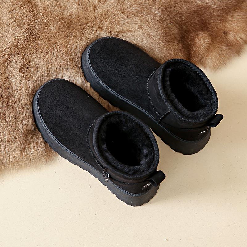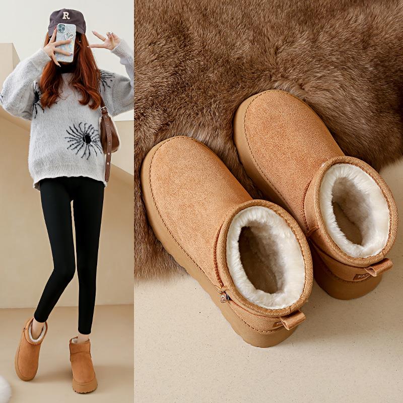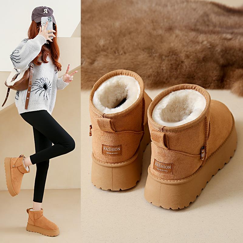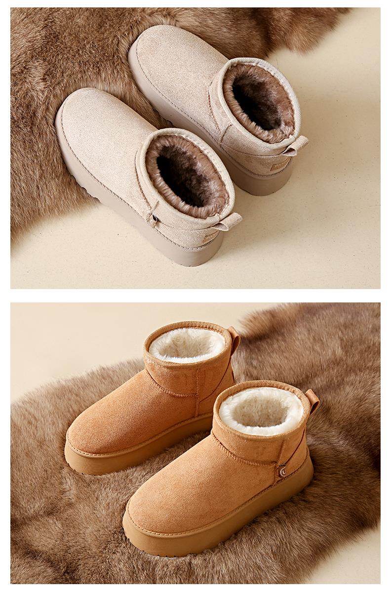 靴筒内里材质: 棉靴筒面材质: 麂皮帮面材质: 鹿皮鞋面内里材质: 棉靴款品名: 雪地靴筒高: 短筒鞋头款式: 圆头后跟高: 平跟跟底款式: 平跟图案: 纯色适合季节: 冬季厚薄: 加厚是否库存:发、否