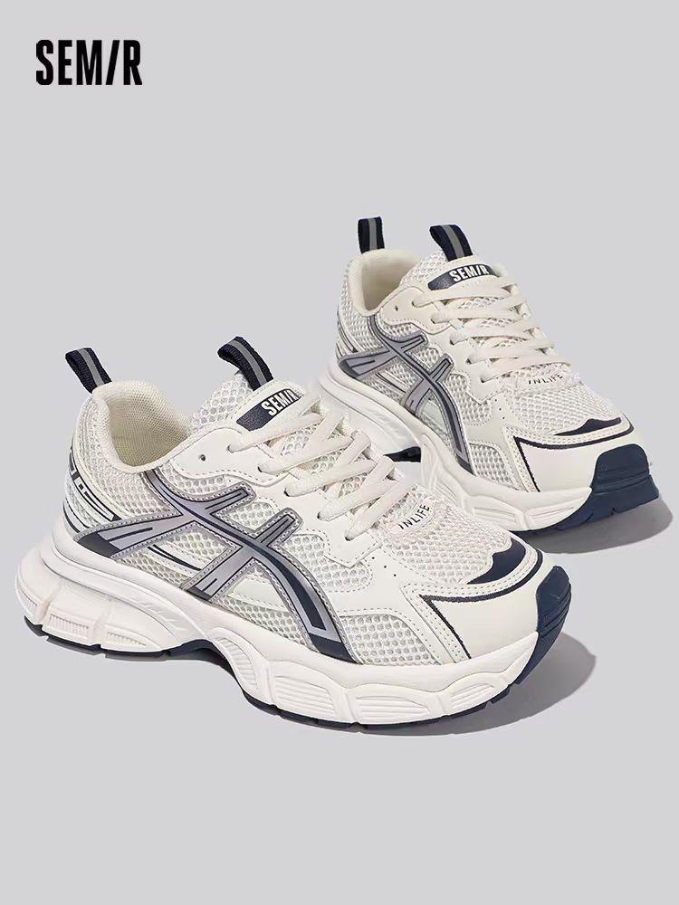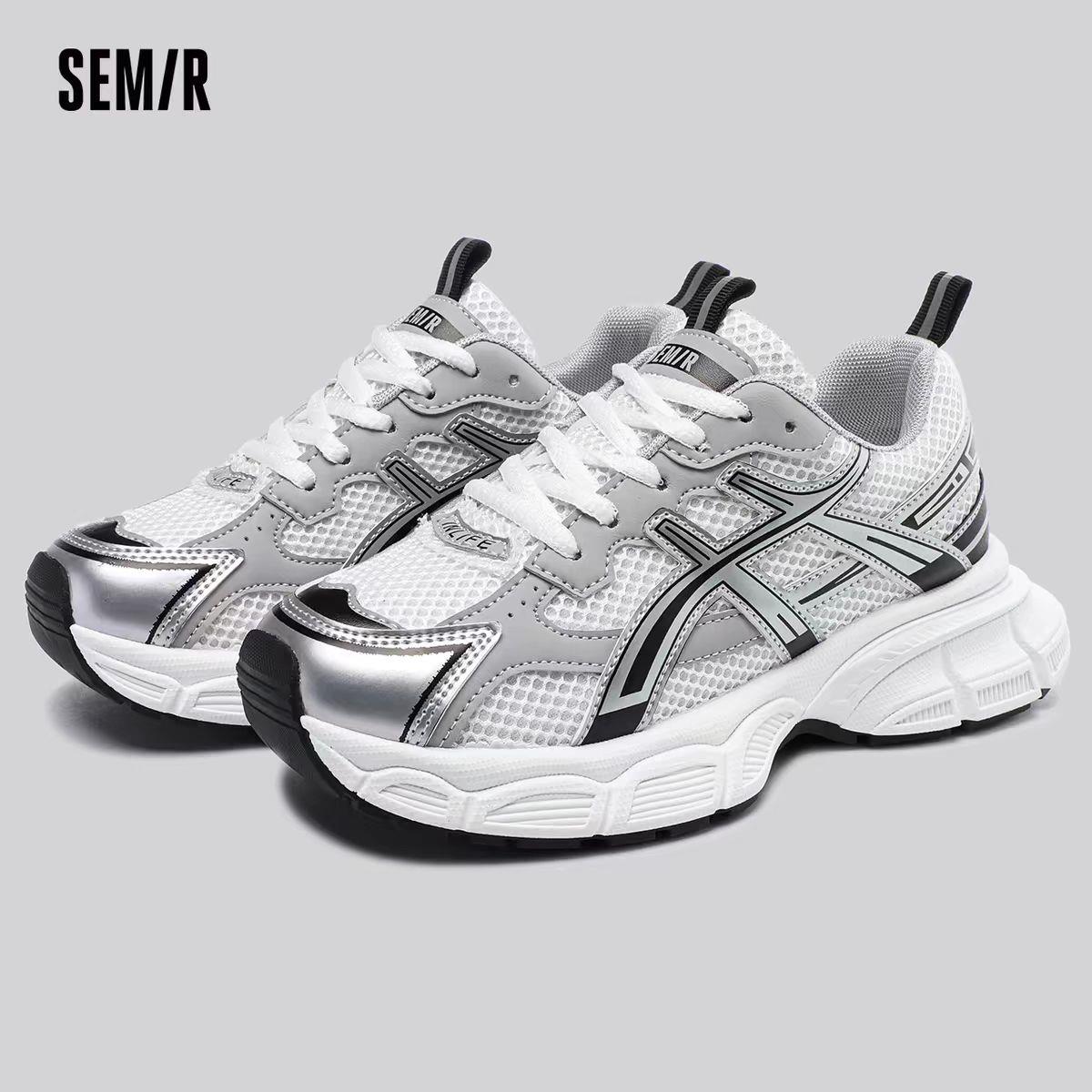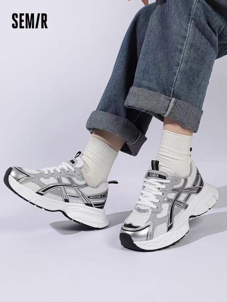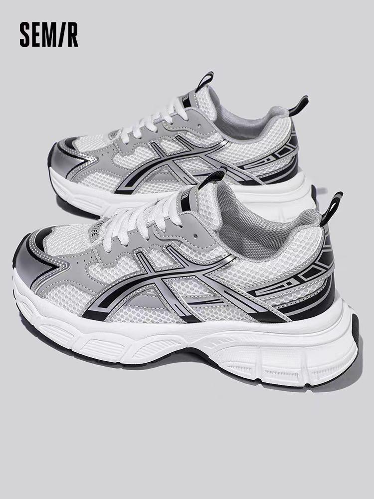 服饰箱包、运动户外 > > 森馬(Senma)个性复古厚底老爹鞋系带透气增高休闲鞋女224312347 银色