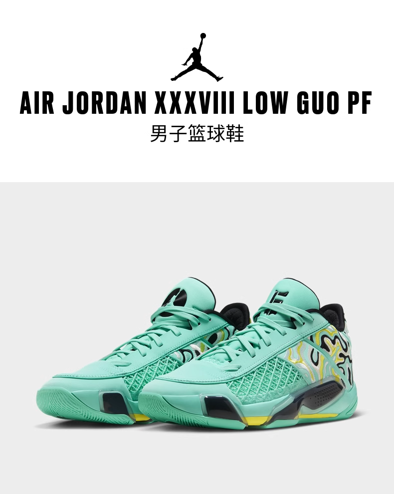 紧密贴地,稳稳应战。AIR JORDAN XXXVIII LOW GUO PF男子篮球