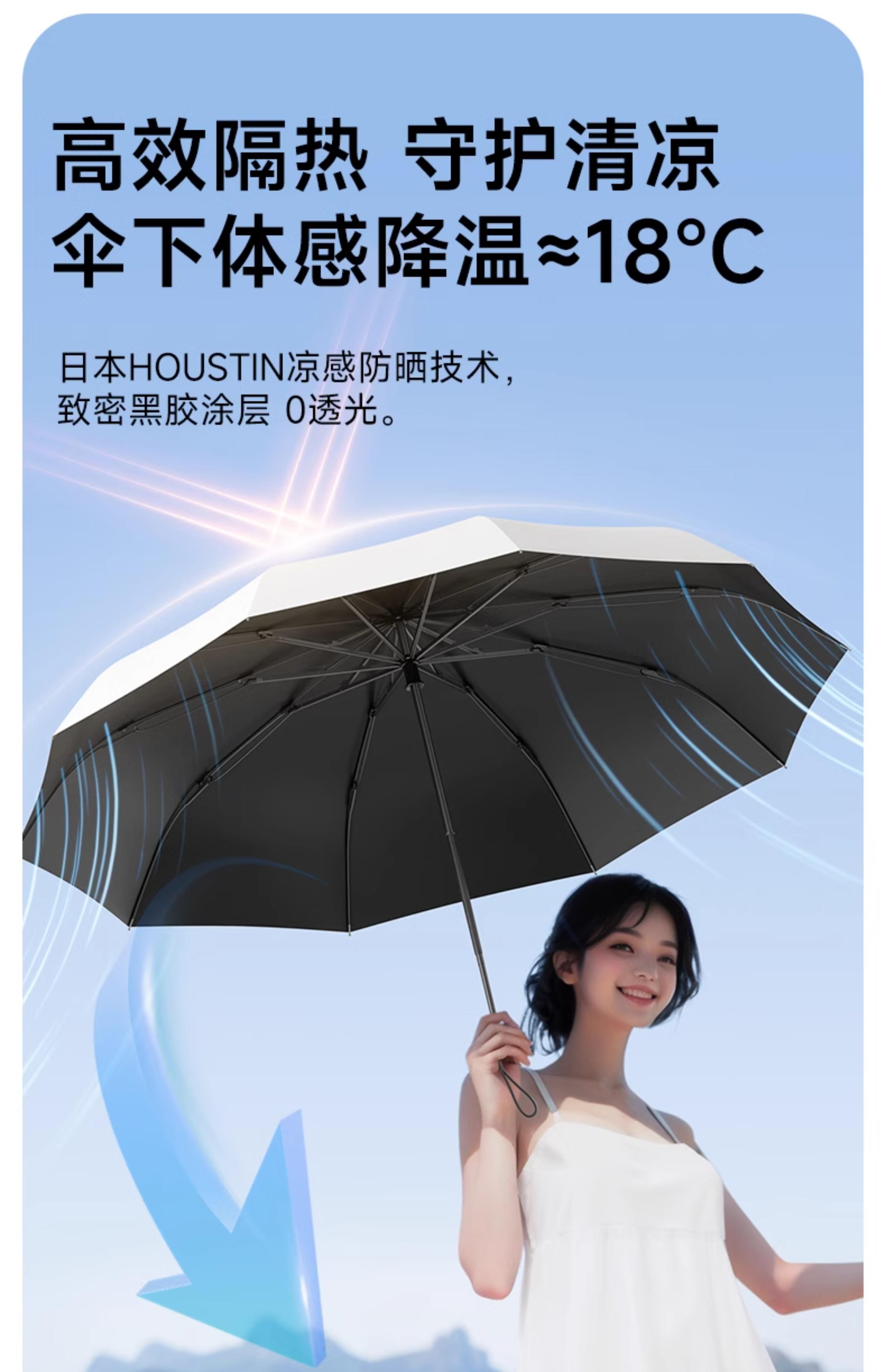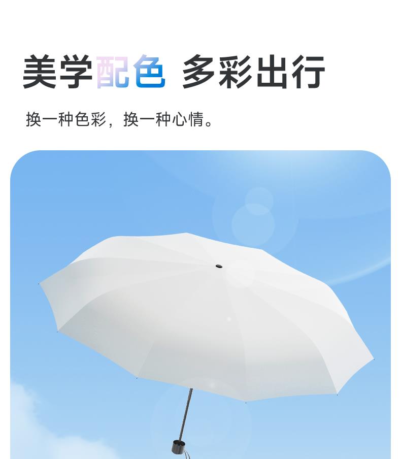 【8骨-静谧白】轻巧便携/黑胶反向/晴雨两用 【8骨-冰川