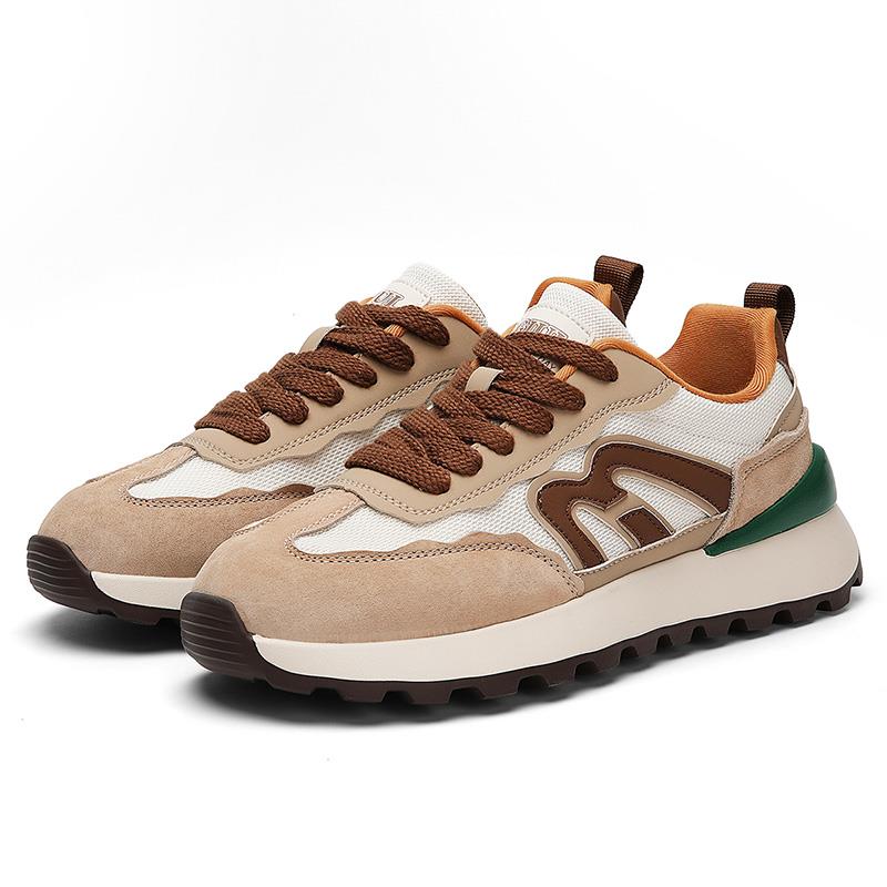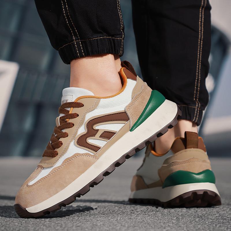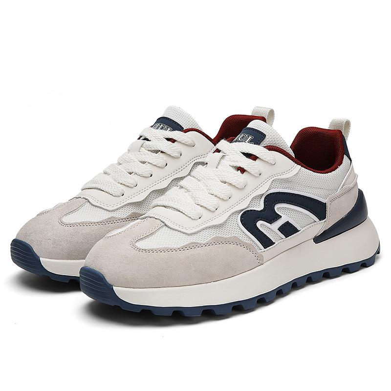 上市年份季节: 2023年春季低帮鞋品名: 商务休闲鞋功能: 轻质图案: 拼色场合: 日常季节: 春秋款式: 运动休闲鞋跟底款式: 厚底销售渠道类型: 商场同款(线上线下都销售)闭合方式: 系带鞋制作工艺: 胶粘鞋鞋头款式: 圆头鞋底材质: EVA鞋跟高: 中跟鞋面内里材质: 网纱鞋面材质: 网布风格: 运动流行元素: 皮革拼接适用对象: 中年 码数:39-44