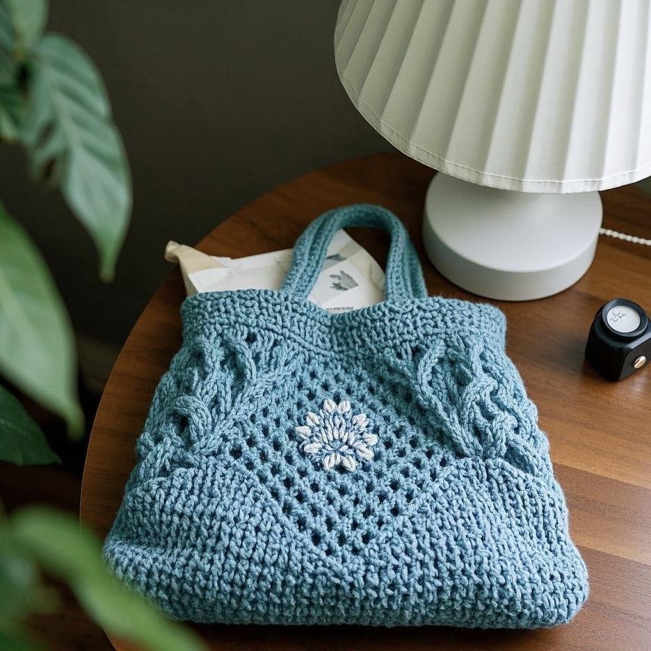邂逅这款手工钩织包,清新湖蓝色,如夏日微风般沁人心脾。