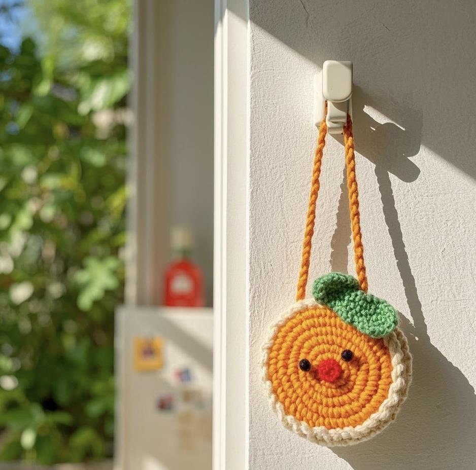 这款以橙子为造型的小可爱,亮橙色的“果肉”,搭配清新的绿色“叶子”,还带着俏皮的笑脸,仿佛在传递快乐 。