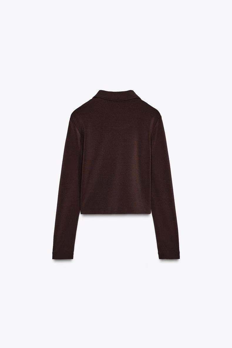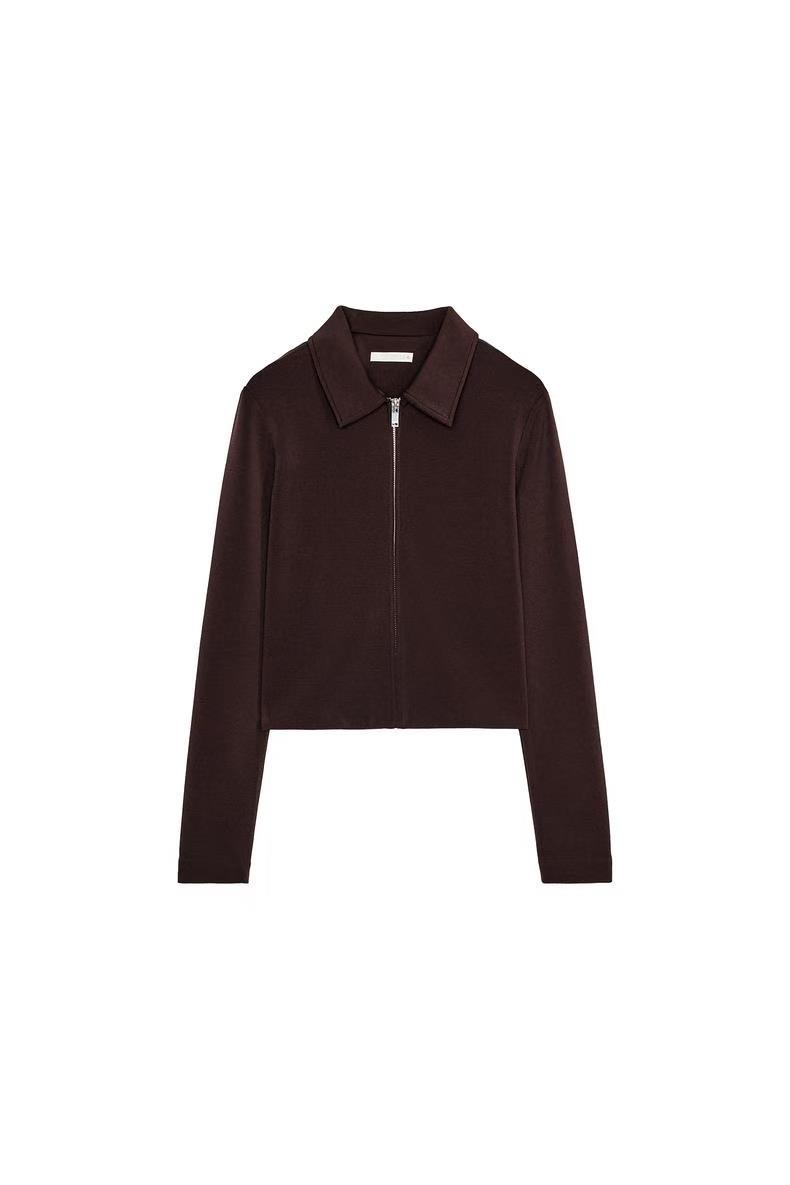 翻领长袖外套,直裁下摆,正面金属拉链闭合