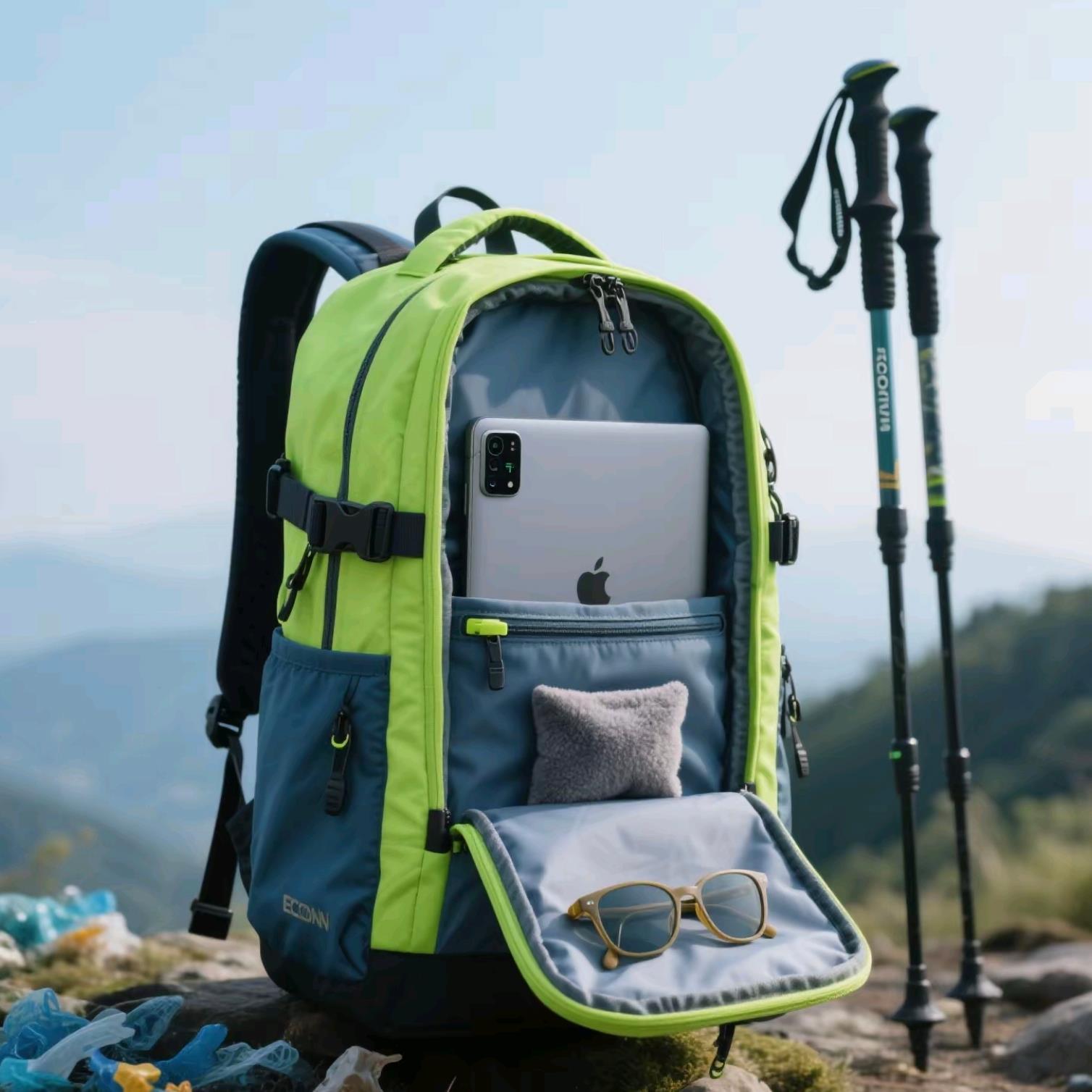 采用ECONYL®再生尼龙(由海洋塑料回收制成),通过GOTS全球有机纺织品认证。独创磁吸快拆系统,可快速切换电脑仓与登山杖挂点,内部配备USB-C快充接口(兼容PD协议)与防刮绒布眼镜袋。外观融入都市机能风设计,可选荧光绿、雾霾蓝等潮流配色,通过10万次耐磨测试,日常通勤与周末徒步无缝切换。