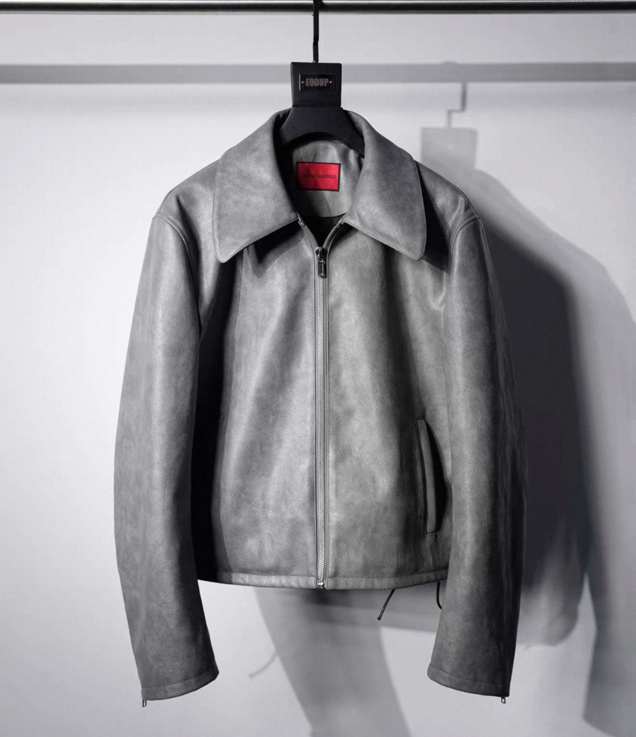 复古廓形金属立领皮夹克