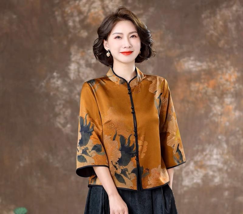 立领设计贴合颈部线条,展现优雅天鹅颈,凸显东方女性的端庄与温婉;别致的盘扣设计,不仅是中式风格的经典元素,更是增添了几分精致感;恰到好处的七分袖长度,露出纤细的手腕,举手投足间尽显优雅。无论是搭配简约的黑色长裙,还是休闲的阔腿裤,都能轻松打造出独具魅力的中式穿搭风格,让您在各种场合都能成为焦点。