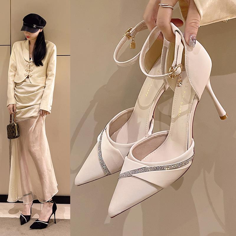 鞋垫材质: 合成革风格: 性感帮面材质: PU内里材质: PU皮质特征: 植鞣鞋底材质: 橡胶开口深度: 浅口鞋头款式: 尖头后跟高: 高跟跟底款式: 细跟闭合方式: 一字式扣带鞋制作工艺: 胶粘鞋图案: 纯色款式: 单鞋适用场景: 宴会流行元素: 水钻适用对象: 中年