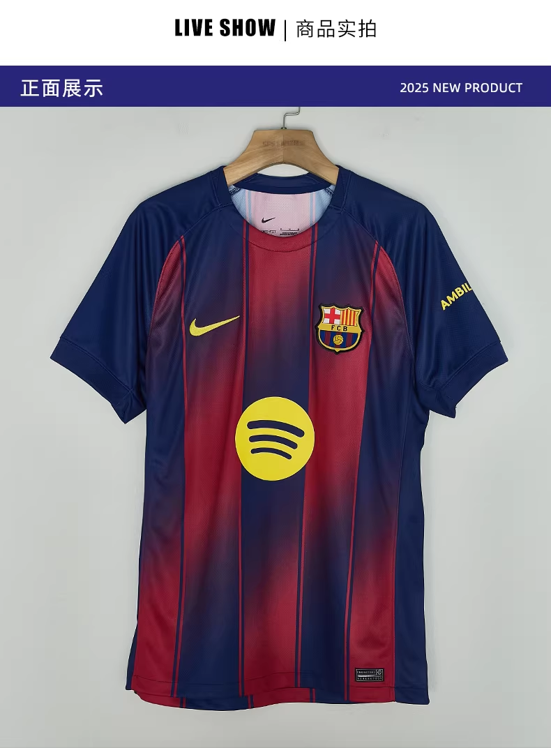 2025 赛季巴塞罗那主场官方球衣,由耐克(NIKE)与巴萨联名打造,以经典红蓝为基底融入潮流渐变设计,是情怀与功能性兼具的球迷必备款 —— 不管是现场观赛穿搭,还是球场实战都能完美 hold 住!