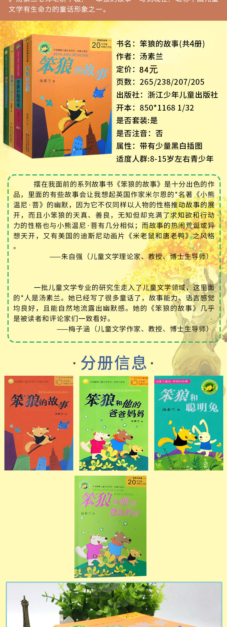 图书、音像 > 留学 > 【全店包邮】笨狼的故事(共4册)/中国幽默儿童文学创作汤素兰系列/笨狼和他的爸爸妈妈/笨狼的学校生活 正版包邮