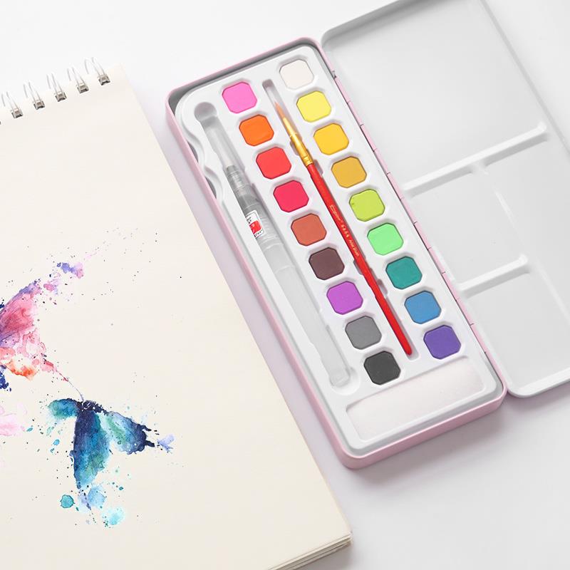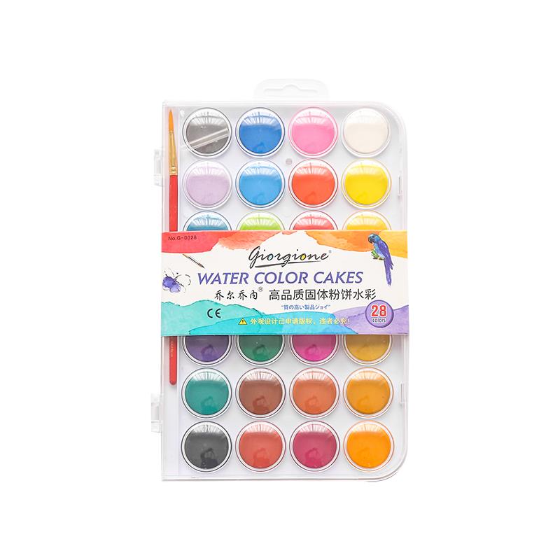 固体水彩颜料套装36色可水洗儿童画笔套装初学者水粉饼